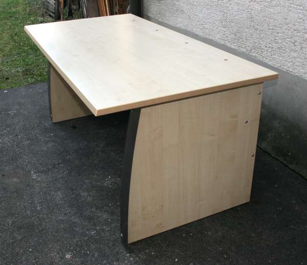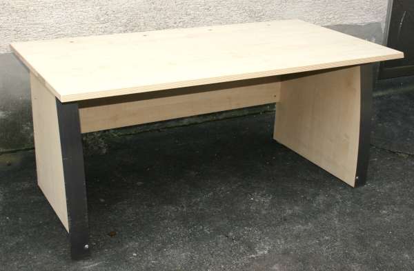 Es handelt sich um einen modernen Schreibtisch mit Ahornfolierung. Breite 160 cm, Höhe 73 cm und Tiefe 80 cm.