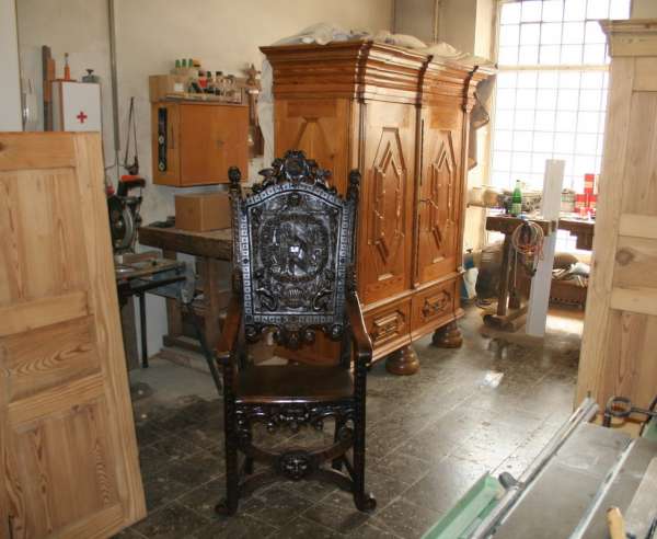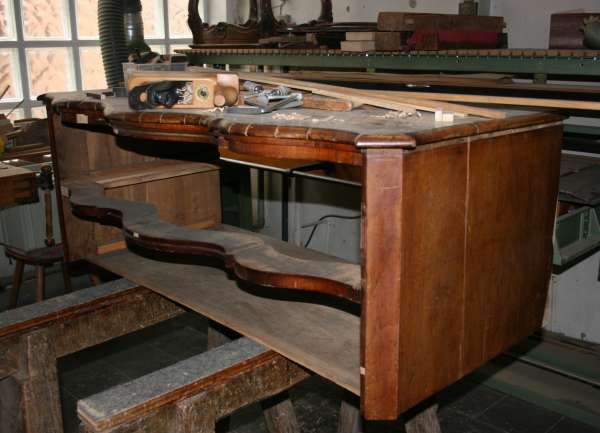Die Möbel stehen bei uns in der Restaurierungswerkstatt und können dort auch abgeholt werden.