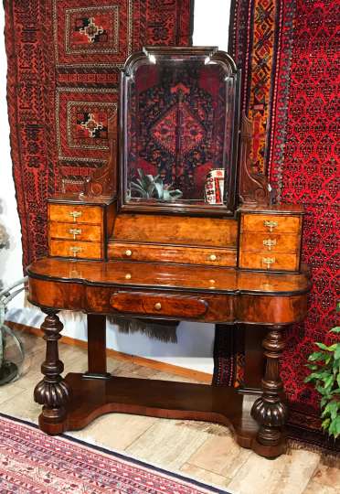 Zwei der Möbel sind frisch restauriert und kommen direkt aus unserer Werkstatt. Sie werden erstmalig wieder in voller Pracht gezeigt.
