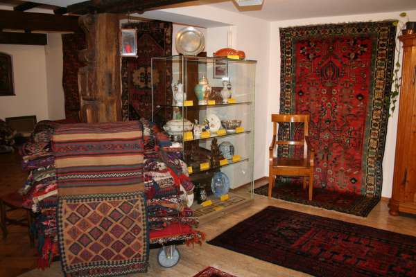 Herbstdekoration ist eine der schönsten Dekorationen, die uns am meisten Freude macht. Die wunderbaren Herbstfarben spiegeln sich in unseren pflanzengefärbten Teppichen wieder, und in Verbindung mit den frisch restaurierten Barock- und Louis-Seize-Möbeln aus der Pfalz und dem Elsass geht das Ganze eine zeitlose Symbiose ein. Als Besonderheit im Herbst zeigen wir, aus zwei uns anvertrauten Sammlungen, Originalgemälde von Christel Abresch, Zeichnungen und Aquarelle von Heiner Deege und Neustadtansichten von Hans Rolf Peter, alles regional und auch überregional bekannte Künstler aus Neustadt/W.