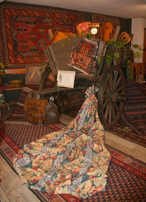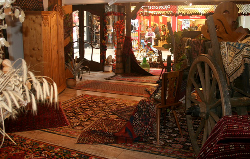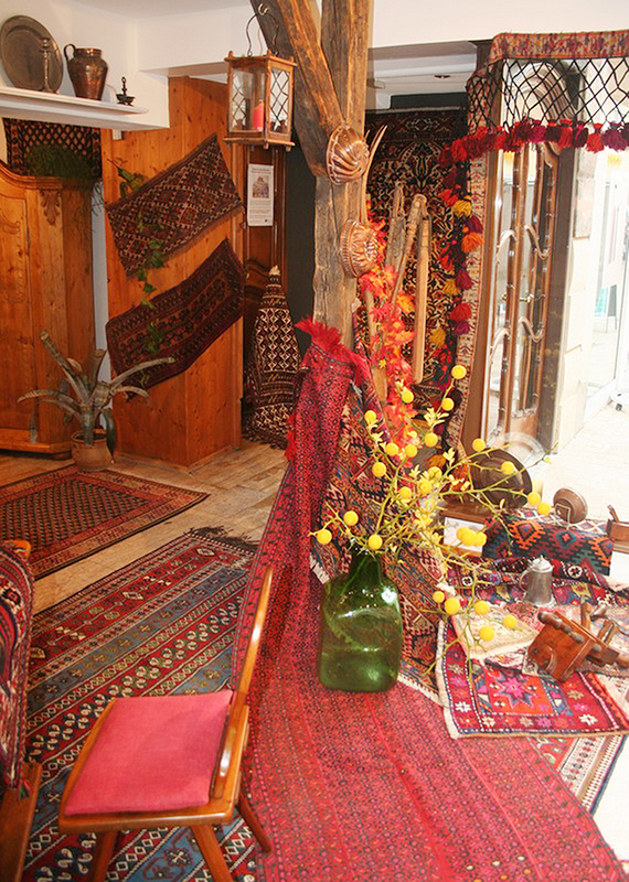 Um die vielen Gäste zur Weinfestzeit in Neustadt/W. entsprechend zu empfangen, ist unsere Weinfestdekoration immer die Umfangreichste. Wir scheuen keine Mühen und sammeln das ganze Jahr über schöne ortstypische Dinge, die wir dann zum Weinfest in unserem Schaufenster stilvoll präsentieren. Zusammen mit unseren pflanzengefärbten Teppichen, die den bunten Herbstfarben sehr ähneln, den warmen Farben unserer Stoffe und der Gemütlichkeit von antiken Pfälzer Möbeln, können wir die Pfalz sehr schön repräsentieren. Sie finden bei uns auch schöne, originale Stahlstiche, Gemälde, Kleinkunst und vieles Andere mehr, alles Dinge, die das Herz und die Seele erfreuen.